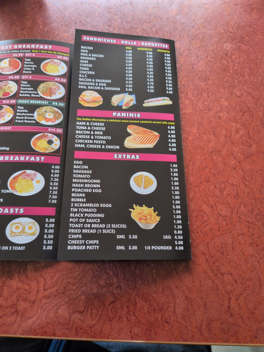 I have to say that this cafe is the best one around locally, the range of food they offer is standard but they do it all to perfection every time and they are fast with it too. I would recommend anyone to come here and try it out, my personal favourite order is the cheese and bacon omelette with a drink. The staff are always happy and welcome you in a personal manner, they really know what they are doing here and I’ve never been disappointed on my visits with any aspect of the business!